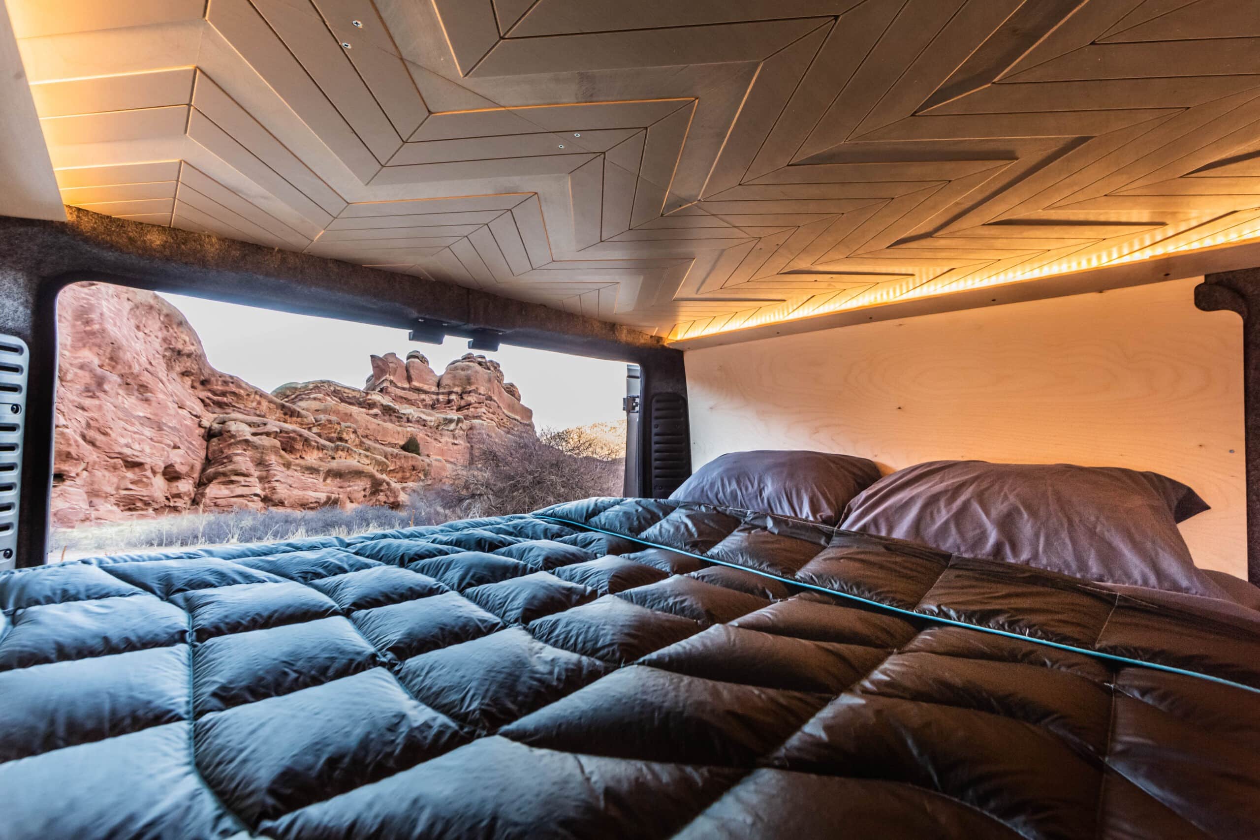 Not only does this customized campervan sleep four, it feeds four too. Its innovative, built in kitchen comes with everything you need to put on your camp chef hat and cook for the whole crew.